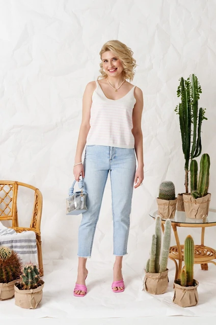Полосатый трикотажный топ, самая популярная модель в гардеробе каждой девушки этим летом.