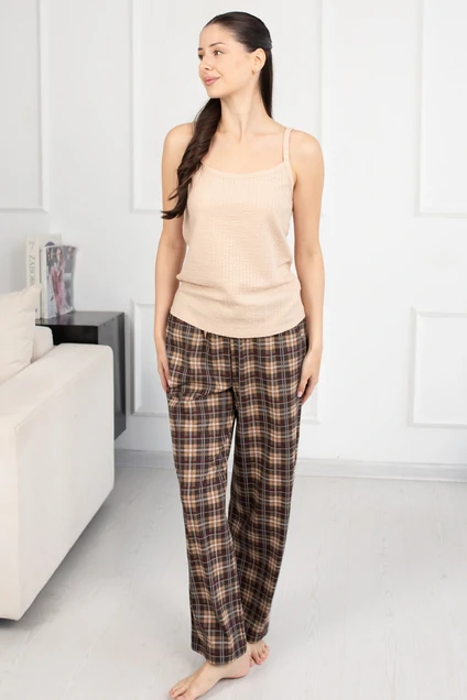 Топ без рукавов, выполненный в приятном бежевом цвете, представляет собой идеальное сочетание комфорта и стиля. Он изготовлен из мягкой кулирной глади, что обеспечивает дополнительный уровень комфорта при носке.