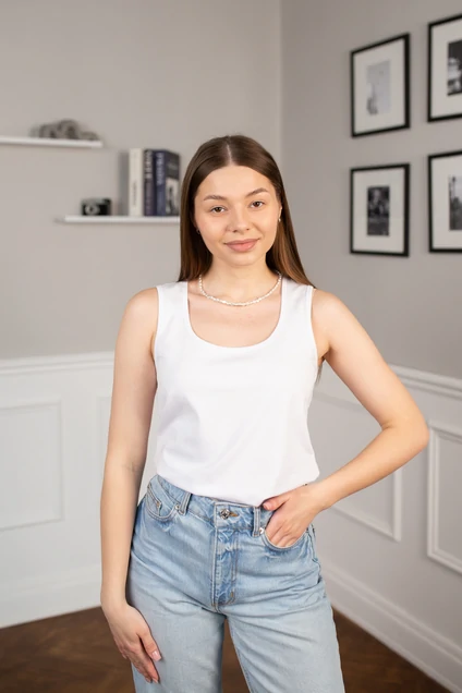 Майка 636316 КУПАЛИНКА — это идеальный выбор для любого гардероба. Коллекция бренда Купалинка сочетает высокое качество и стиль. Изделие выполнено из мягкого хлопка с добавлением полиуретана, что обеспечивает приятные тактильные ощущения и легкость ухода. Белый цвет добавляет универсальность, подходя для разнообразных образов. Легкая и практичная майка без рукавов прекрасно впишется в летний гардероб, обеспечивая комфорт в жаркую погоду. Идеальна для повседневного ношения, будь то прогулка или встреча с друзьями. Классический крой и отсутствие дополнительных деталей усиливают её базовый стиль, предоставляя множество возможностей для комбинирования.
