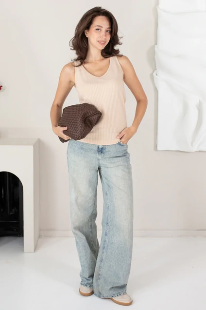 Топ без рукавов в пастельно-розовом оттенке. Эта универсальная модель выполнена из ткани на основе кулирной глади, что делает её идеальным выбором для тёплой погоды. Топ обладает мягкой текстурой с нежным рисунком, придающим изделию изысканный вид. Основные детали включают округлый вырез горловины и широкие бретели, обеспечивающие комфорт при носке. Безупречный выбор для создания легких и стильных образов.