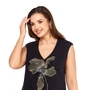 Элегантная черная блуза прямого силуэта идеально подойдет для создания стильного повседневного образа. Особенностью модели является V-образный вырез, который придает изделию изысканный вид. Нагрудные вытачки от боковых швов обеспечивают отличную посадку по фигуре. Неповторимый акцент блузы - декоративная вышивка в виде изящного цветка на передней части. Ассиметричный низ с отрезной деталью и небольшой разрез в левом боковом шве добавляют модели динамичность и современный вид. Плечи слегка спущены, что добавляет расслабленности и удобства. Эта блуза станет отличным дополнением к вашему гардеробу, подчеркивая вашу утонченность и чувство стиля.