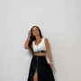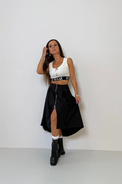 Топ белого цвета выполнен из мягкого трикотажа, идеально подчеркивающего фигуру благодаря прилегающему силуэту. Модель без рукавов обеспечивает дополнительный комфорт и свободу движений, делая её идеальным выбором для теплой погоды. Особый акцент данного топа — притачная резинка по низу, которая добавляет изысканности образу, а также надпись "Sugar" на груди, придающая изделию модный и современный вид.