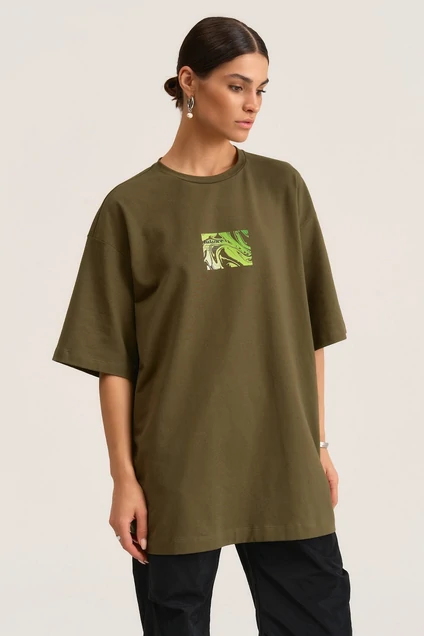 Модель one size. Футболка в стиле onesize свободного силуэта со спущенной линией плеча выполнена из кулирки. Вырез горловины овальной формы. Рукава втачные, одношовные. Парные дизайнерские печати по переду и спике. Такая футболка станет незаменимым элементом любого гардероба.