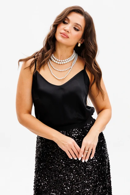 Элегантный атласный топ — идеальный выбор для тех, кто ценит роскошь и комфорт в повседневной жизни. Модель выполнена из гладкого атласа, который придает образу блеск и шик. V-образный вырез подчеркивает линию шеи и создает эффект стройности, а тонкие регулируемые бретели обеспечивают удобную посадку. Топ доступен в двух цветах: яркий красный и классический черный, что позволяет создавать разнообразные образы. Красный топ станет отличным выбором для вечерних мероприятий, добавляя образу дерзости и энергии, а черный — идеален для офиса или деловых встреч, создавая строгий и элегантный образ. Гладкий атлас обеспечивает приятное ощущение на коже и добавляет образу роскоши. V-образный вырез и тонкие бретели делают топ модным и привлекательным. Подходит как для вечерних мероприятий, так и для повседневной носки. Регулируемые бретели позволяют адаптировать топ под разную фигуру. Комбинируйте с юбкой-миди и высокими каблуками для создания эффектного образа. Наденьте с классическими брюками и туфлями на каблуке для делового стиля. Создайте расслабленный лук с джинсами и кроссовками. Топ отлично комбинируется с кружевной блузкой 1160бл, с белым жакетом 1048ж