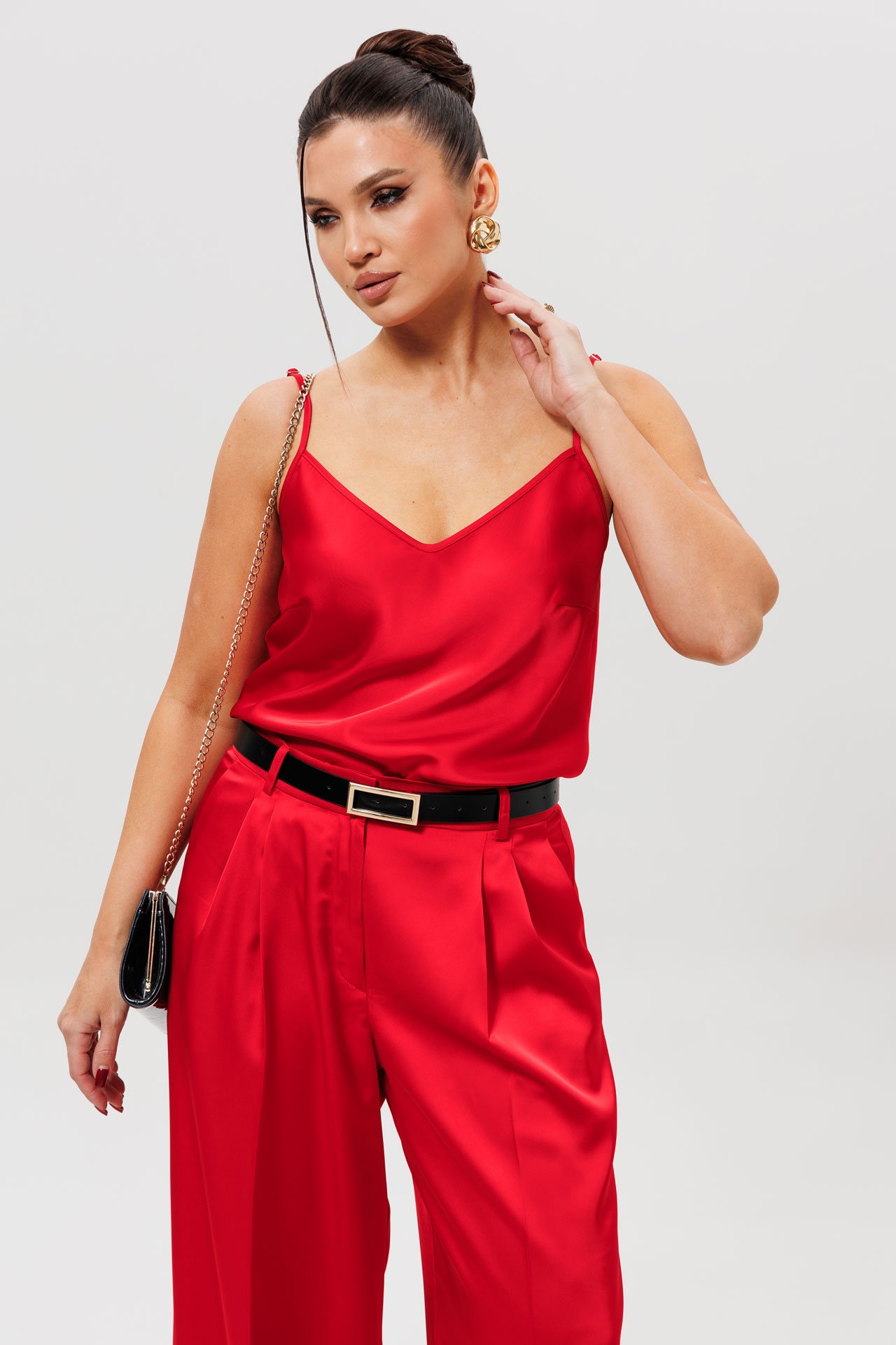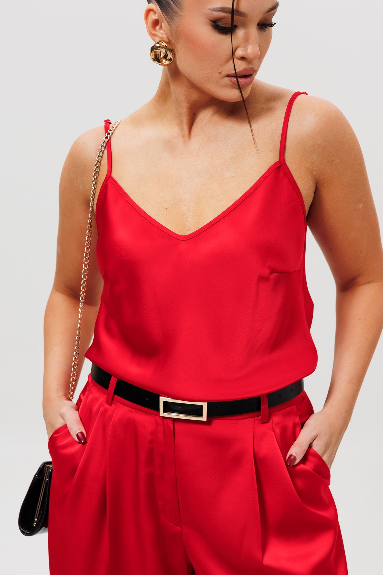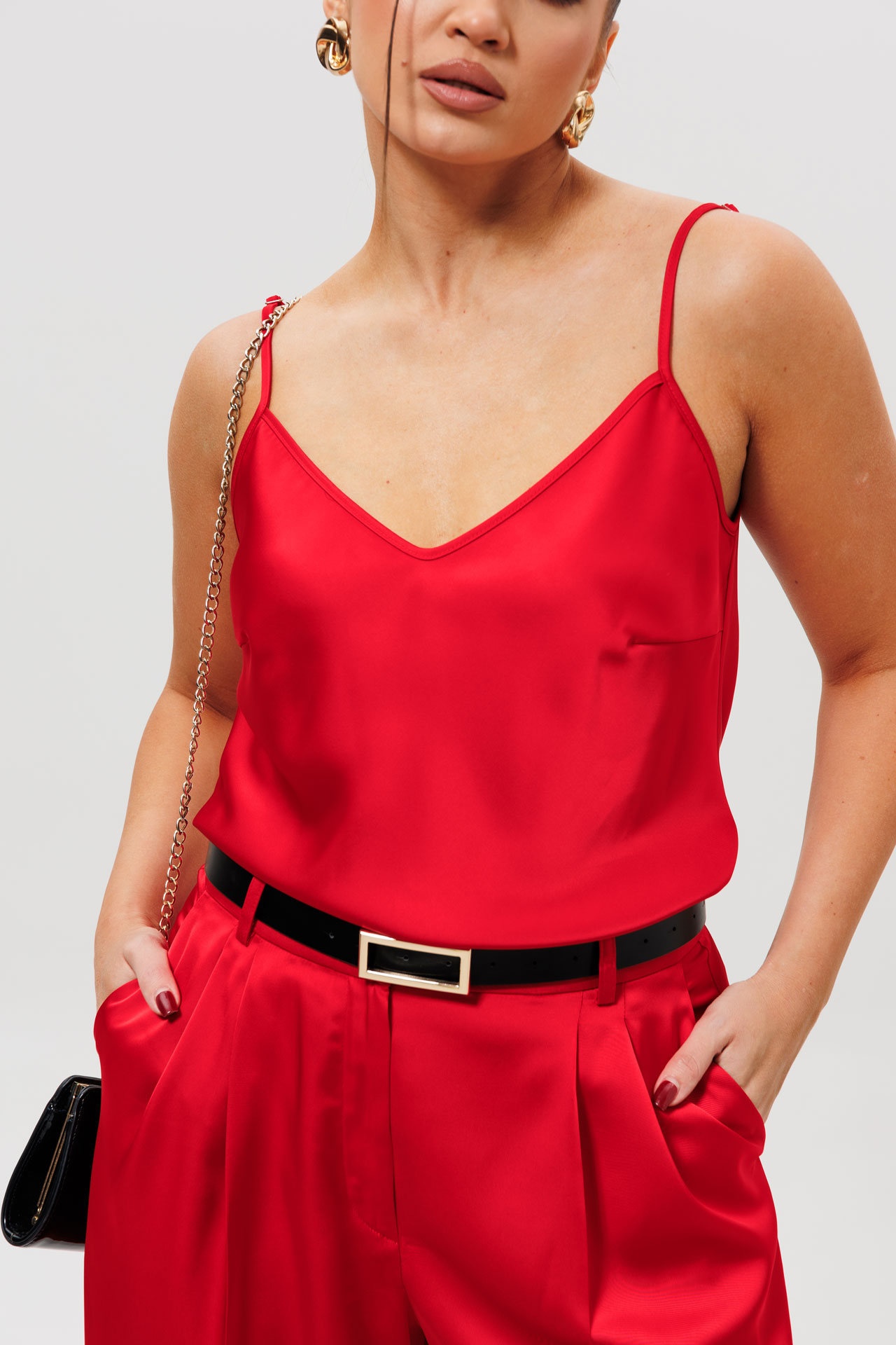 Элегантный атласный топ — идеальный выбор для тех, кто ценит роскошь и комфорт в повседневной жизни. Модель выполнена из гладкого атласа, который придает образу блеск и шик. V-образный вырез подчеркивает линию шеи и создает эффект стройности, а тонкие регулируемые бретели обеспечивают удобную посадку. Топ доступен в двух цветах: яркий красный и классический черный, что позволяет создавать разнообразные образы. Красный топ станет отличным выбором для вечерних мероприятий, добавляя образу дерзости и энергии, а черный — идеален для офиса или деловых встреч, создавая строгий и элегантный образ. Гладкий атлас обеспечивает приятное ощущение на коже и добавляет образу роскоши. V-образный вырез и тонкие бретели делают топ модным и привлекательным. Подходит как для вечерних мероприятий, так и для повседневной носки. Регулируемые бретели позволяют адаптировать топ под разную фигуру. Комбинируйте с юбкой-миди и высокими каблуками для создания эффектного образа. Наденьте с классическими брюками и туфлями на каблуке для делового стиля. Создайте расслабленный лук с джинсами и кроссовками. Топ отлично комбинируется с кружевной блузкой 1160бл, с белым жакетом 1048ж