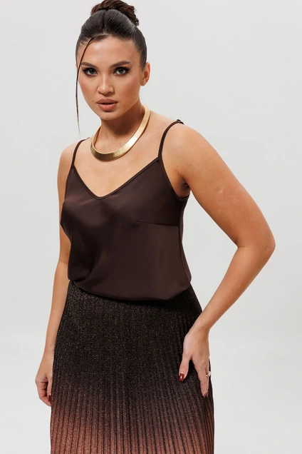 Топ выполнен из атласной ткани. Изделие прямого силуэта с нагрудными вытачками. Перед фигурный, обработан окантовкой, так же, как и низ изделия. Бретели регулируются. Этот базовый топ (Арт. 1164) — фундаментальная вещь в вашем гардеробе. Доступный в трех насыщенных цветах (красный, черный, шоколадный), он станет идеальной основой для сложных многослойных образов. Топ выполнен из комфортной ткани, которая хорошо сочетается с кружевными и бархатными вещами. Его можно носить с юбкой 1281, под кружевными жакетами или с кейпами из нашей коллекции. Универсальный топ подчеркивает фигуру и обеспечивает комфорт в течение всего дня. Размеры 46-56.
