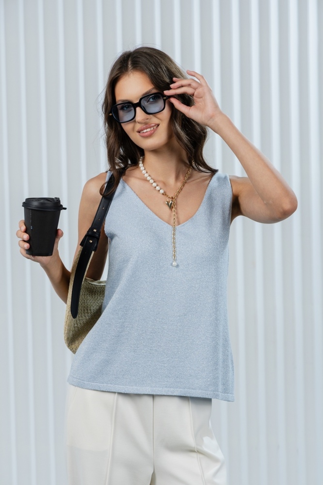 Топ РВ0385-ХМ2 бледно-голубой + серебро Romgil