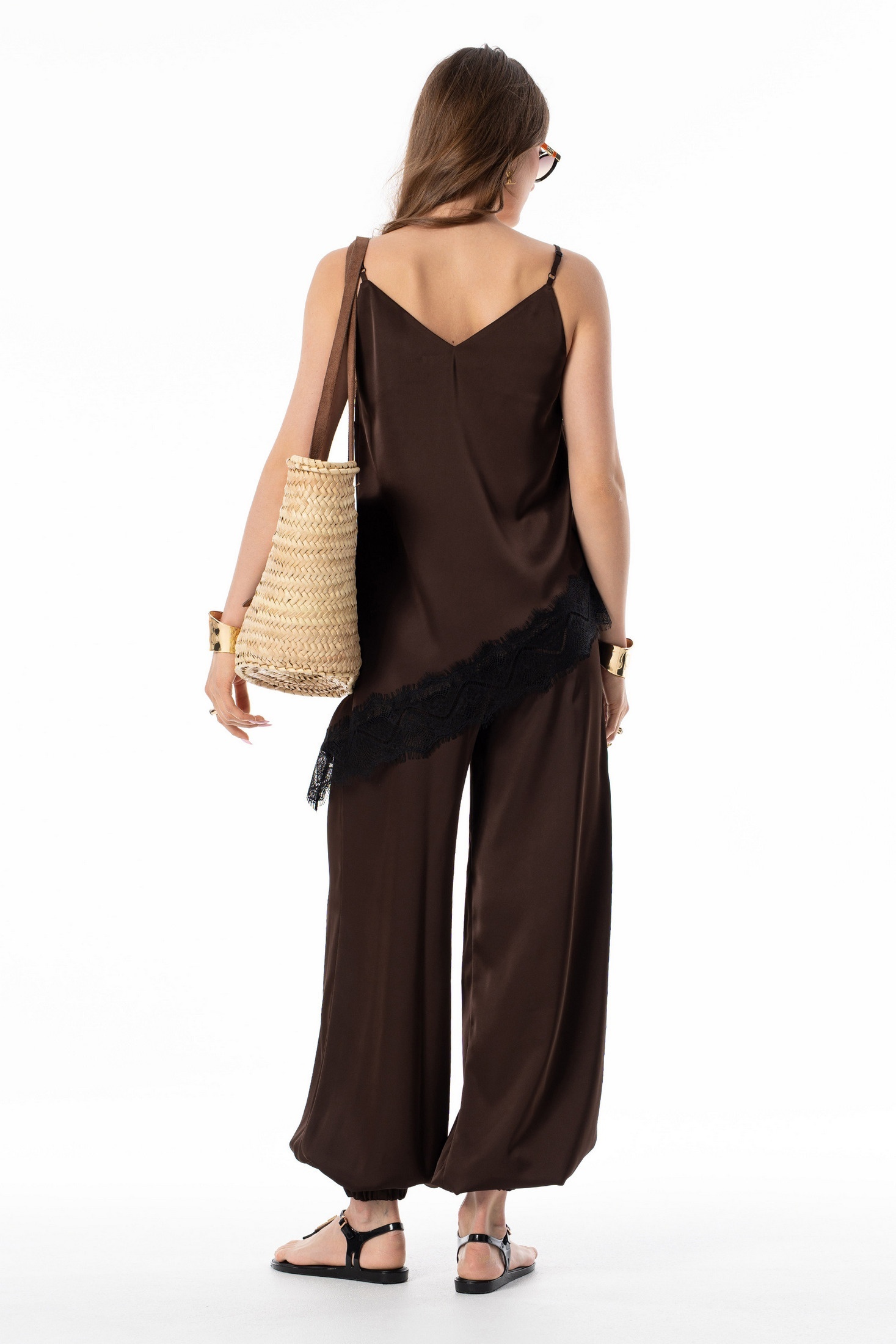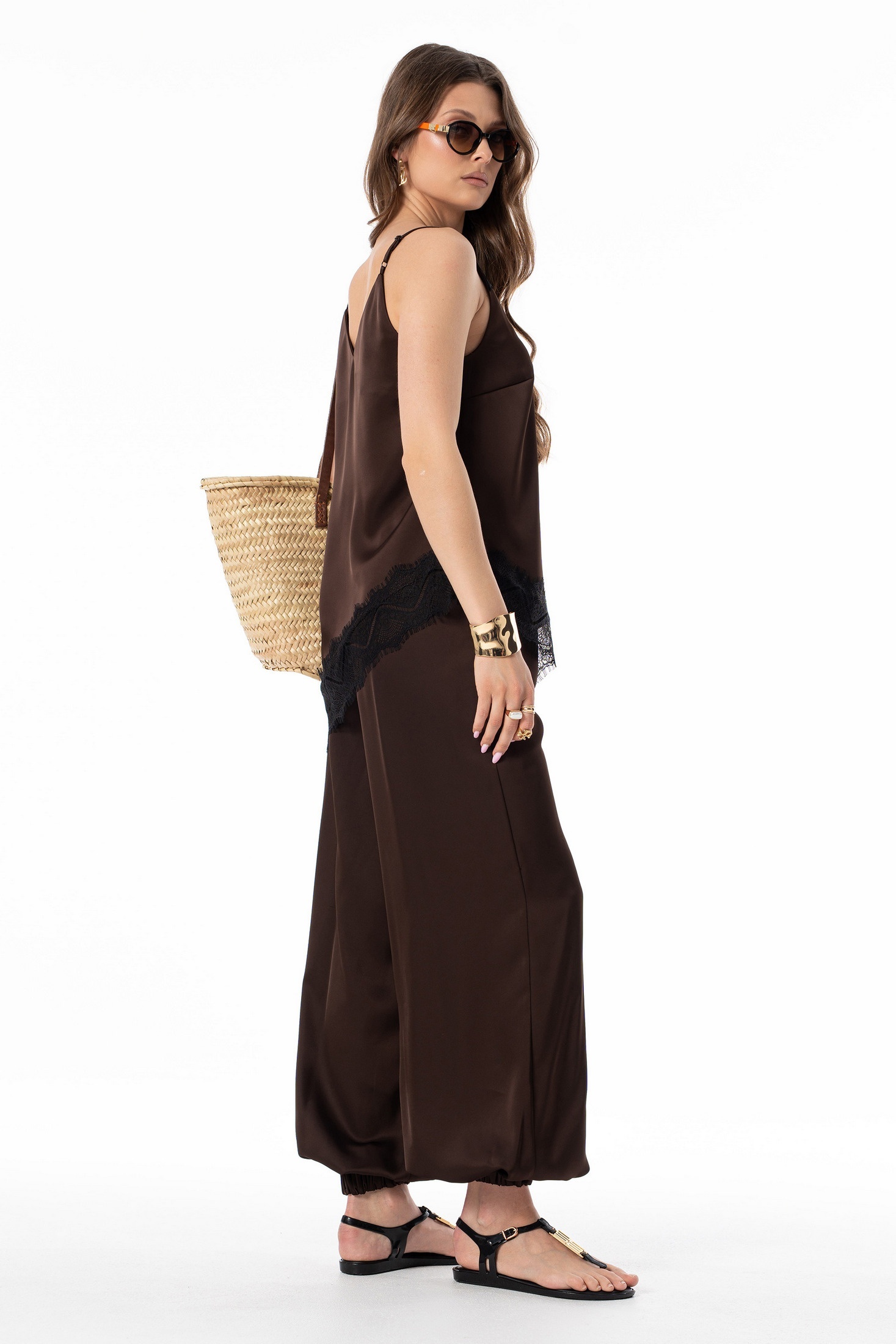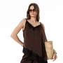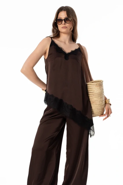 Топ 7635 шоколад SILVERSPICE — изысканный элемент вашего гардероба. Коллекция бренда SILVERSPICE предлагает свободный силуэт с нагрудными вытачками, декорированный французским кружевом. Шоколадный оттенок и шелковистая текстура делают изделие стильным и комфортным. Регулируемые бретели обеспечивают точную посадку. Асимметричная линия низа добавляет оригинальности. Этот топ идеально подходит для летнего или весеннего сезона и превосходно сочетается с любыми брюками или юбками. Длина по боковому шву от проймы — 33 см справа и 65 см слева, обеспечивая уникальную посадку.