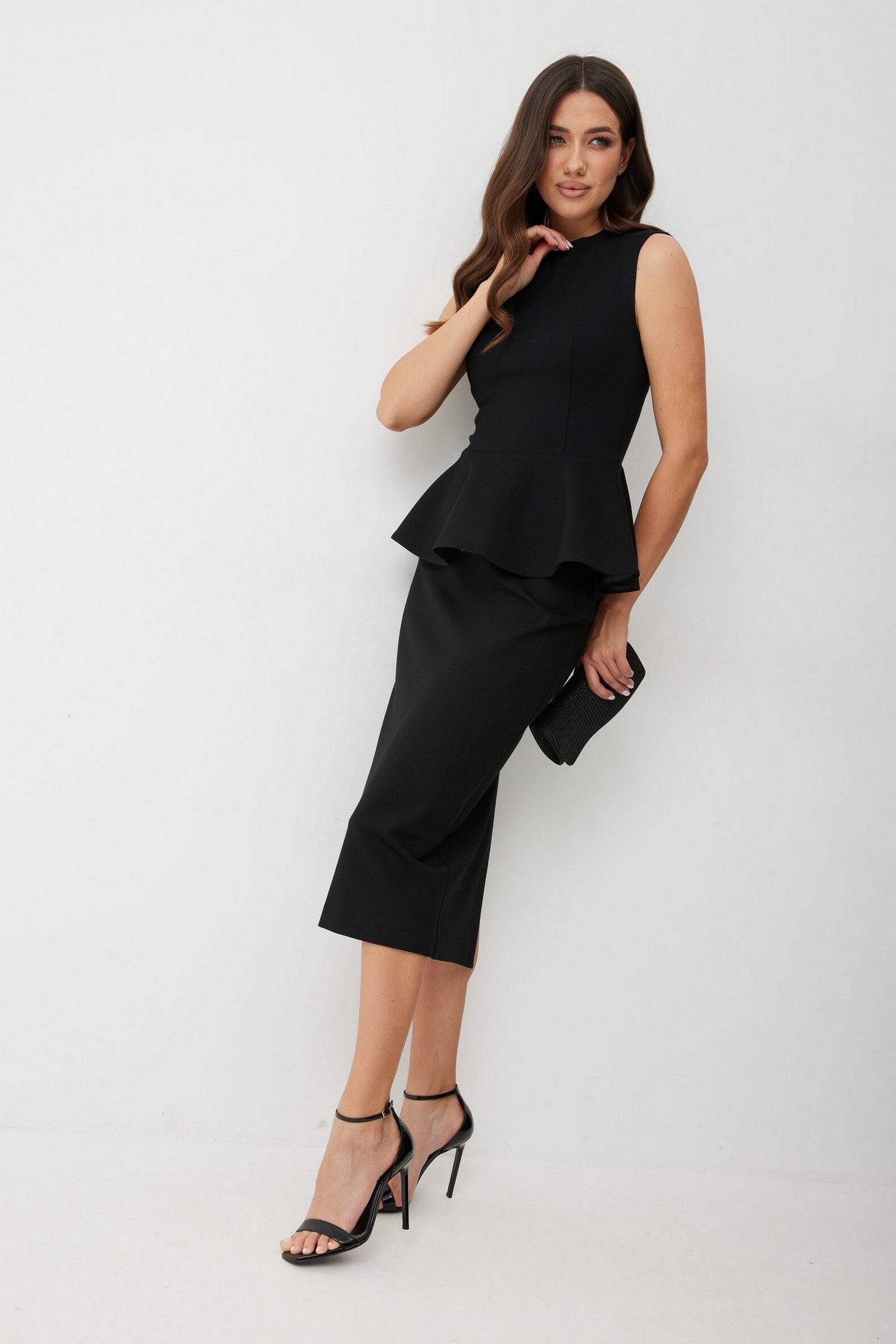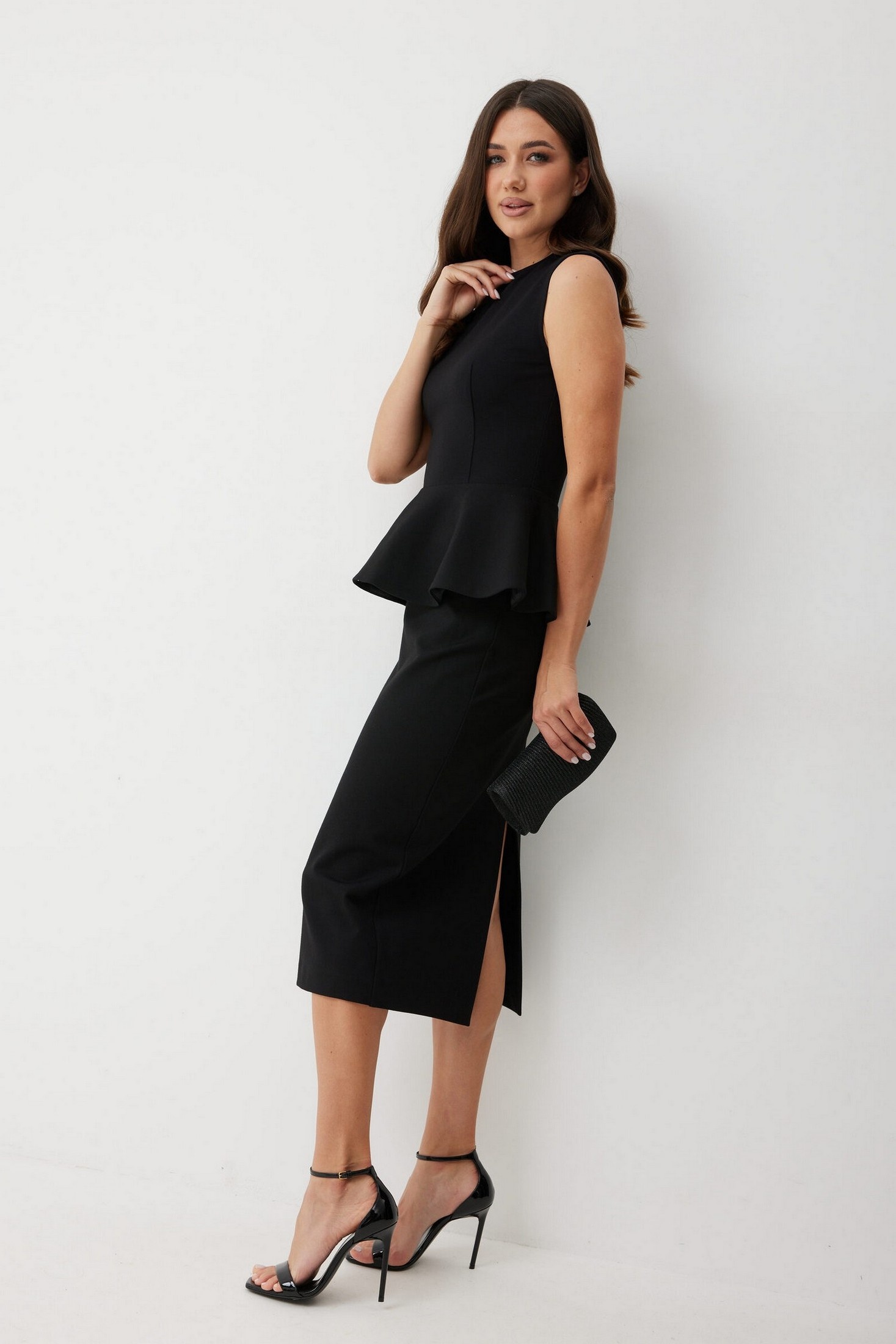 Элегантный женский топ с баской — это идеальное решение для создания женственного образа. Топ выполнен из плотной, хорошо тянущейся трикотажной ткани, которая отлично держит форму и обеспечивает безупречную посадку. Длинная потайная молния на спинке обеспечивает невидимую застежку и гладкую линию силуэта. Этот топ легко интегрируется как в строгий деловой, так и в вечерний или праздничный гардероб.