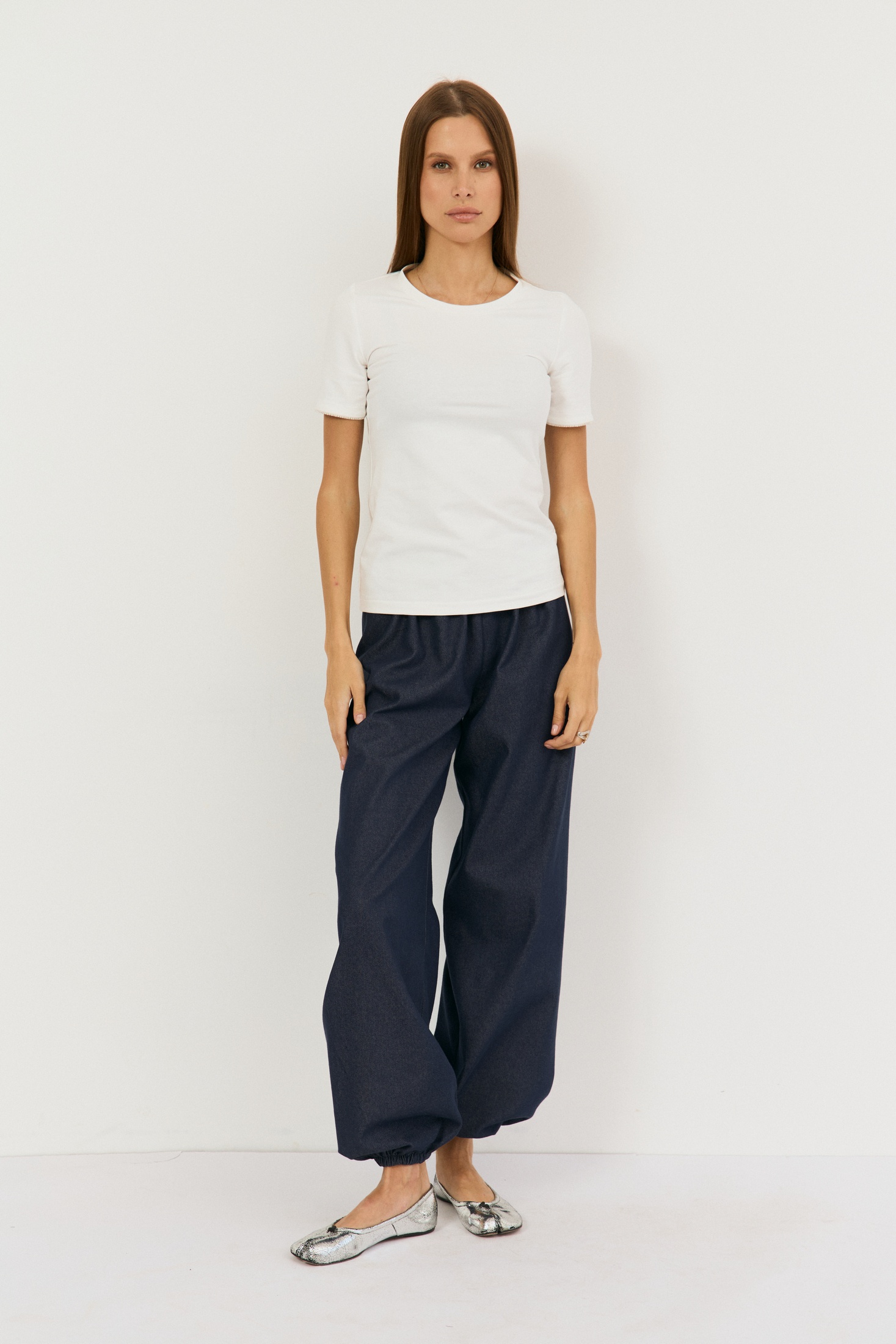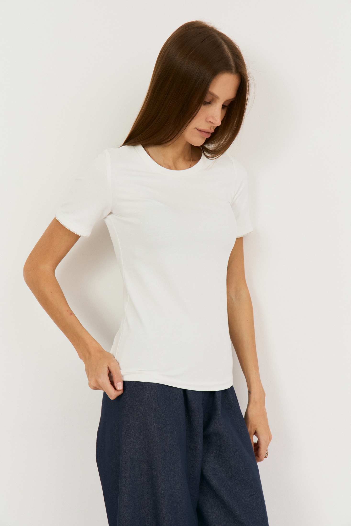 Майка 2493 молочный The name — это базовая футболка, выполненная из мягкой хлопковой ткани кулирка, обеспечивающей комфорт и дышащие свойства в течение всего дня. Коллекция бренда The name предлагает прилегающий силуэт с декоративной тесьмой со стразами по линии рукава, добавляющей изысканный акцент. Вырез горловины круглый, обработан бейкой, что гарантирует дополнительное удобство при носке. Идеально подходит для повседневного гардероба, эта футболка станет прекрасным дополнением как в весенне-летний, так и в летний сезон. Молочный цвет изделия подчеркнёт вашу индивидуальность и легко сочетается с другими элементами гардероба. Полуобхват груди составляет 39 см, длина рукава — 21 см, а длина по спинке — 59 см, что обеспечивает идеальную посадку.