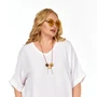 Туника выполнена из дышащей высококачественной ткани, которая не мнется и сохраняет свежесть даже в летний зной. Ее можно сочетать с чем угодно: наденьте с облегающими леггинсами для прогулки, с белыми брюками и плетеным итальянским ремнем (как в нашем луке с артикулом 2029) для элегантного образа или с шортами для пляжного отдыха. Этот предмет гардероба легко трансформируется из повседневного в вечерний — добавьте массивные украшения или шелковый шарф, и вы готовы покорять вечеринки!