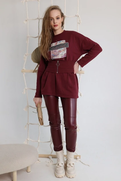 Майка- туника с уникальным дизайнерским принтом ручной работы. Изделие с длинным рукавом и сьемным поясом-резинкой на молнии.