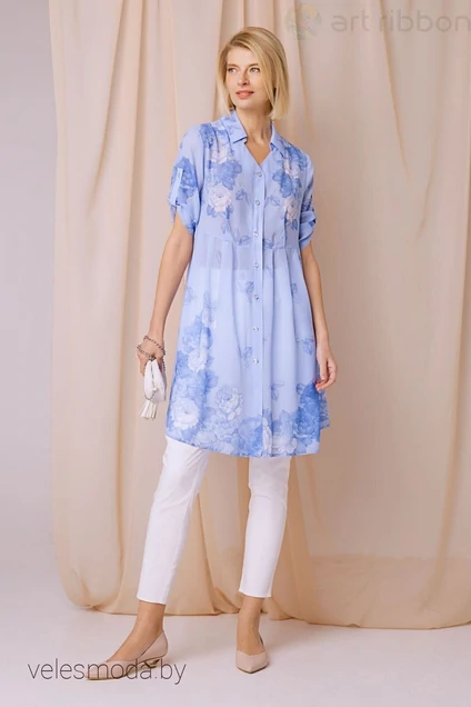 Струящийся невесомый шифон идеален для летней туники. А в сочетании с автроским нежным принтом Ваш образ будет незабываемым.
