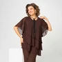 Туника с рукавом 3/4 с разрезом и фигурным низом. Изделие трехслойное, все слои с асимметричным низом. Застежка-капелька на спинке.Длина изделия 74 (±1) см. Длина рукава 35 (±1) см.