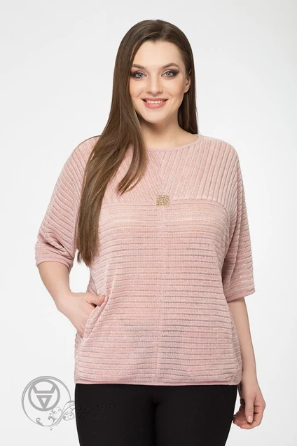 Туника женская свободного покроя, с круглым вырезом горловины, цельнокроеными рукавами длиной 3/4. Перед со средним швом, с рельефными швами, с карманами. Спинка со средним швом, с рельефными швами, с застёжкой на декоративную тесьму молнию. Туника длиной выше линии бедер. Отделкой туники является декоративное украшение. Длина спинки 59-64 см Длина рукава 44-49 см