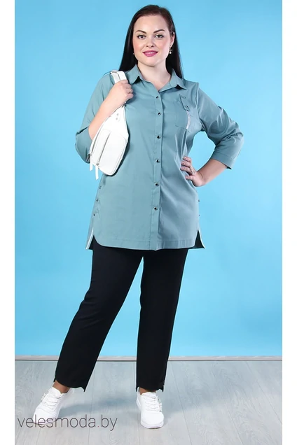 Стильная туника прямого силуэта из хлопчатобумажной ткани - это прекрасный вариант на каждый день. Небольшие пуговицы и нашивки акцентируют боковые разрезы и накладной карман и создают стройнящий эффект, делают модель нарядной. У туники отложной воротничок со стойкой, втачные рукава длиной три четверти с манжетами, застежка на пуговицы. Модель прекрасно сочетается с зауженными брючками. Предлагаем в комплекте с брюками 2062.
