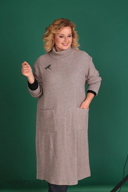 Ткань туники плотная, с красивым переплетением нитей (трехнитка). Длина по спинке 117 см. Туника со спущенным рукавом, по полочке обработаны накладные карманы, в боковых швах разрезы, горловина обработана воротником стойкой. Длина рукава 62 см. Туника выполнена из сырья высокого качества, произведенного в РБ. Ткань устойчивой окраски, малоусадочная. В комплект входит брошь.
