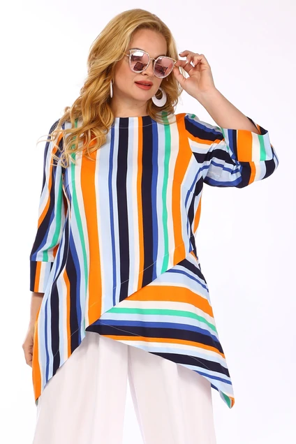 Туника выполнена из мягкой штапельной ткани устойчивой окраски. Рекомендуется вертикальная сушка.