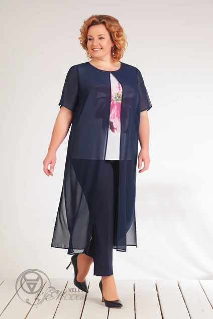 Описание внешнего вида: туника с круглым вырезом горловины, двуслойная. Верхняя деталь длинная, с втачным рукавом, по верхней части рукава разрез, закрепленный закрепками. По переду с нагрудными вытачками, по боковым швам – разрезы. Нижняя часть туники без рукава, по переду с нагрудными вытачками. Две части туники закреплены по горловине. Силуэт: прямой Вид покроя рукава: втачной, короткий, Цветовая гамма для верха, подкладки, фурнитуры, отделки: туника из неэластичной ткани в одной цветовой гамме, По переду нижняя туника декорирована печатью и клеевыми стразами. Рукава верхней части туники декорированы клеевыми стразами. Тип ткани: текстильный Комплектация: туника