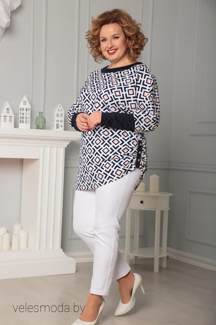 Стильная женская туника , которую вы сможете носить как с брюками,так и с юбками.Скрывает все недостатки и подчеркивает достоинства. Длина по спинке 76 см , длина рукава сманжетом 72 см