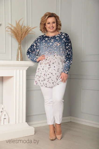 Туника 1161 синий+цветы LADIS LINE