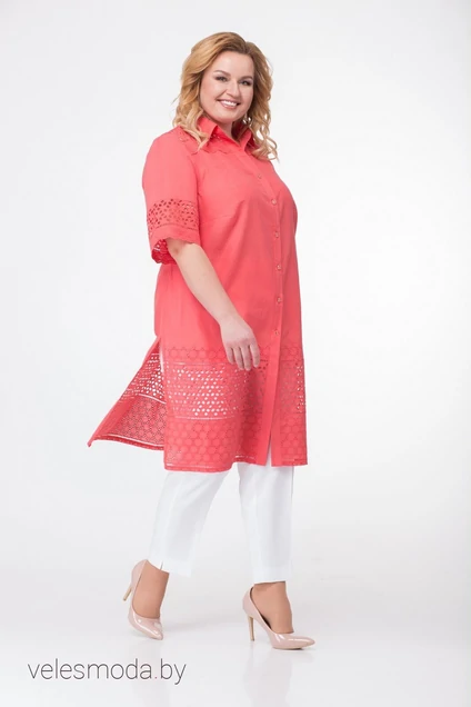 Комфорт и удобство- это основное качество, которое можно создать на основе платья-туники. Преимуществом является то, что оно зрительно удлиняет силуэт. Туника с поясом свободного покроя, с разрезами в боковых швах, выполнено из хлопкового полотна с шитьем по низу. Перед с нагрудной вытачкой. По переду и спинке кокетка, изготовлена из шитья. Воротник стояче- отложной с отрезной стойкой. По центру переда приточная планка. По планке застежка на шесть прорезных петель и пуговиц. Рукав втачной, одношовный с шитьем по низу. Туника Длина спинки от плеча – 102 см. Длина рукава -33 см.