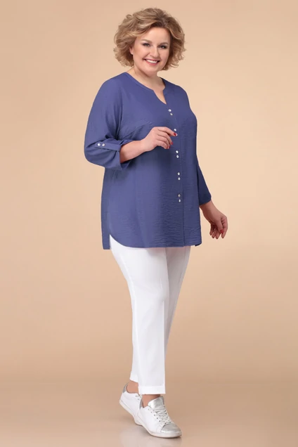 Повседневная текстильная удлинённая туника свободного кроя. Натуральная лёгкая ткань с жатым эффектом очень практична в носке, позволяет телу дышать и чувствовать себя комфортно даже в знойные летние дни. Вырез горловины фигурный V-образный. Рукав втачной 3/4 с патой на пуговках. По переду нагрудные вытачки. Застежка центральная на петли и пуговки из ракушки. По бокам разрезы -- спереди округлой формы. Длина спинки -- 74см. длина рукава -- 49см. ПОГ: 54р-60см, 56р-62см, 58р-64см. ПОБ: 54р-63см, 56р-65см, 58р-67см.