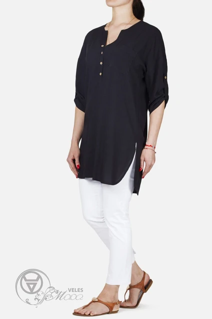 Ткань: штапель Лёгкая и удобная туника свободного кроя с разрезами в боковых швах. Рукава застёгиваются на паты. Спереди застёгивается на пуговицы. Длина изделия: р -ры 46-50 -87см р- ры 52-58 -93 см Ширина по линии груди: 44р-108см, 46р -112 см , 48р -116 см ,50р -120см, 52р -124 см, 54р -128 см , 56р -132 см, 58р -136 см Длина рукава с учётом плеча – 55 см