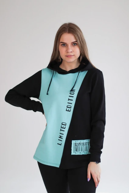 Туника прямого силуэта. Спущенный рукав. Рукава на манжетах. Капюшон. Принт. Длина изделия: 75 см