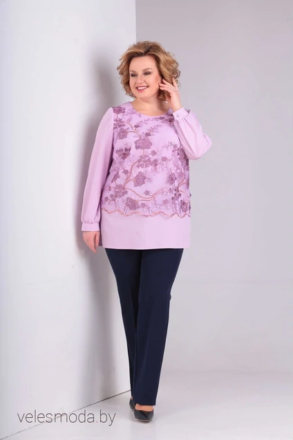 Нарядная туника из шифона и гипюра. Туника свободного прямого покроя с разрезами по бокам. Низ по задней полочке слегка удлиненный и округлой формы. Длина туники по центру спинки 77 см., длина гипюра 57см. Рукав длинный с напуском на притачную манжету. Длина рукава 64 см.