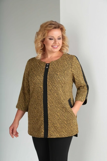 Туника.Выполнена из трикотажа,имееет функциональные два кармана,закругленные разрезы по бокам.Длина по спинке от верхней точки плеча 80см.Длина рукава -44см.