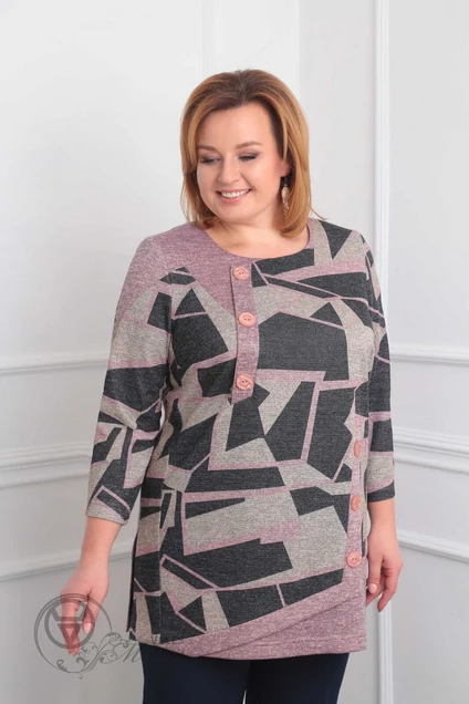 Туника 931 пудра+серая геометрия Орхидея Люкс