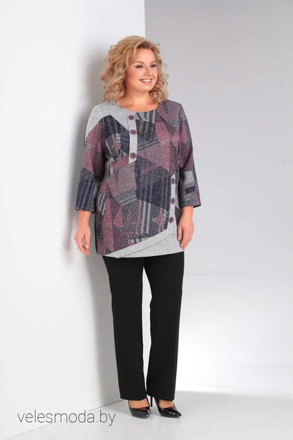 Туника 931 серо-сине-розовый принт Орхидея Люкс
