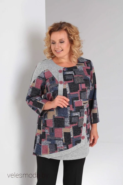 Туника 931 светло-серый+квадраты Орхидея Люкс