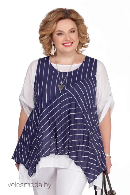 Туника 1088 синий+полоска Pretty