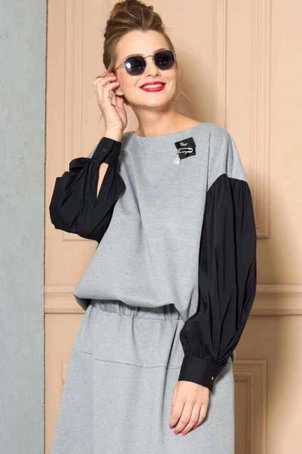 Туника свободного фасона из качественного трикотажа с объемными рукавами из хлопковой ткани.