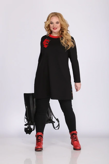 Туника женская прямого силуэта с втачным рукавом изготовлена из натурального трикотажного х/б полотна со стрейчевым эффектом. Горловина округлой формы обработана притачной планкой контрастного цвета. В боковых швах функциональные карманы . По левому боковому шву разрез-шлица с настрочной декоративной тесьмой . По центру спинки встречная бантовая складка украшена декоративной тесьмой. По переду оригинальные декоративные элементы из контрастной ткани. Ткань очень приятная к телу, фасон современный спортивный стиль. Широкий размерный ряд позволит удовлетворить большое количество покупателей.