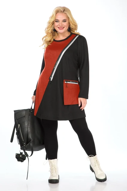 Туника 2234 черный + кирпич SOVITA
