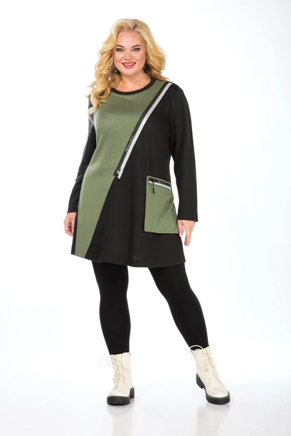Туника женская прямого силуэта изготовлена из трикотажного полотна со стрейчевым эффектом. Рукав втачной длинный. Горловина округлой формы обработана планкой. Ассиметричная линия по переду подчеркнута притачной декоративной молнией со светоотражающим эффектом. Оригинальный отлетной функциональный карман с действующей застежкой – молнией закреплен по боковому шву. Так же присутствует разрез-шлица. Туника мягкая теплая и очень приятная к телу. Обувь можно использовать как спортивного стиля так и обычного.