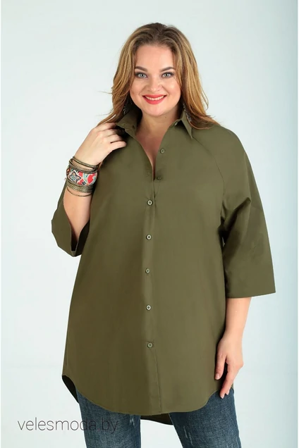 Туника женская из хлопкового полотна, свободного кроя с центральной застежкой на планку. Воротник рубашечный на стойке. Рукав-реглан с центральным швом, длиной ¾ -(59) см., низ обработан манжетом, которым можно регулировать длину, подвернув манжет.