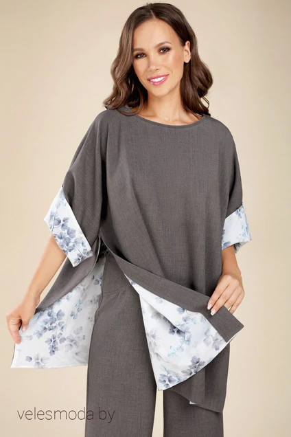 Пончо 1285 графит+листики на голубом TEFFI Style