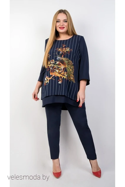 Блузка двухслойная расклешенная из двух видов полотен с внутренними карманами в швах и удлиненной спинкой. Рукава прямые с эффектной линией низа, подчеркнутой отделкой. Длина блузки - 84 см, длина рукава - 48 см.