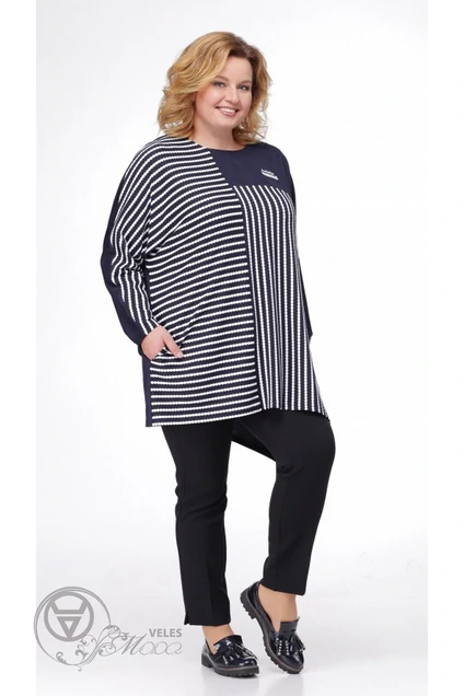 Туника женская, изготовлена из двух тканей, стиль "БОХО".Туника объемная на основе "летучая мышь". Полочка рассечена декоративными линиями. Вырез горловины круглый, в боковых швах карманы. С левой стороны бок удлиненный, закладывается в драпировку. На передней полочке - термопечать. Возможен заказ без печати. Длина по спинке - 79 см, длина рукава + плечо - 71 см.