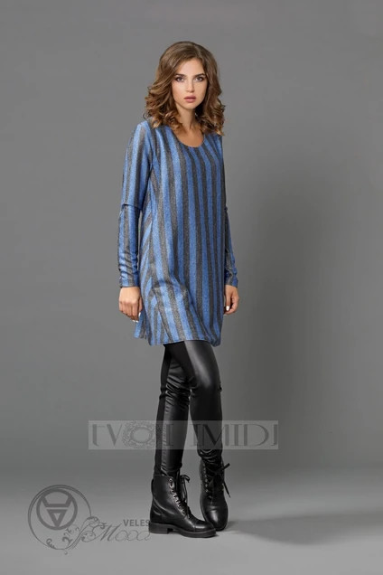 Туника трапецивидного силуэта.Рукав втачной длинный.Застежка на навесную петлю и пуговицу по горловине спинки.Длина изделия ниже линии бедер.