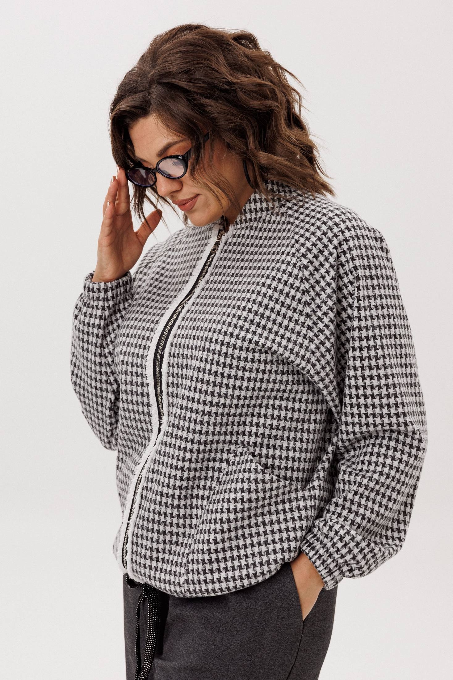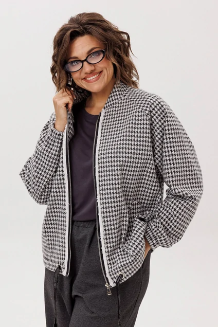 Этот блузон, словно воплощение непринужденной элегантности, предлагает ощущение комфорта, которое становится продолжением тебя. Его прямой силуэт, лишенный строгих границ, мягко следует за очертаниями фигуры, даря свободу каждому движению. Уют обрамляет горловину благодаря воротнику-стойке, создавая ощущение защищенности в прохладный день. Центральным элементом, приковывающим взгляд, служит застёжка-молния, чья фактурная текстура напоминает легкую, пушистую изморозь, придавая практичной детали неожиданно художественный эффект.