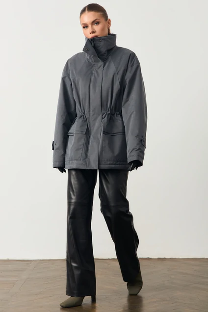 Женская куртка из 100% полиэстера в приглушённом сером оттенке. Элегантная модель прямого кроя достигает длины 74 см и оснащена высоким воротом, добавляя изысканности образа. Рукав длиной 75 см обеспечивает комфорт в прохладную погоду. Куртка снабжена удобной кулиской на поясе для регулируемой посадки. Подкладка выполнена из смеси вискозы (53%) и полиэстера (47%), что гарантирует дополнительный комфорт. Несмотря на отсутствие узоров, дизайн изделия выделяется строгой лаконичностью и функциональной эстетикой.