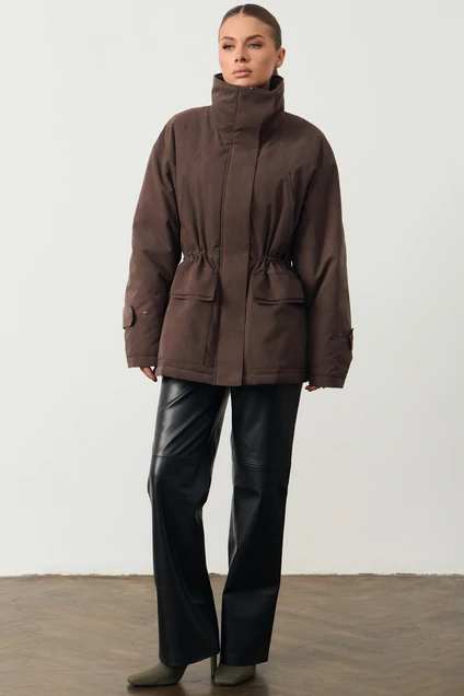 Описание для интернет-магазина: --- **Женская куртка с высоким воротом** Эта стильная женская куртка выполнена из 100% полиэстера с подкладкой из 53% вискозы и 47% полиэстера, обеспечивает идеальное сочетание комфорта и качества. Куртка имеет прямой крой с длиной изделия 74 см и длиной рукава 75 см, что добавляет изысканность в повседневный образ. Оснащена высоким воротом и удобной кулиской на поясе для регулировки по фигуре. Куртка представлена в двух цветовых вариантах: элегантный серый и насыщенный коричневый, каждый из которых дополнен утонченными накладными карманами для удобства. --- Это описание подходит для размещения в каталоге вашего интернет-магазина, представляя товар в наилучшем свете для потенциальных покупателей.