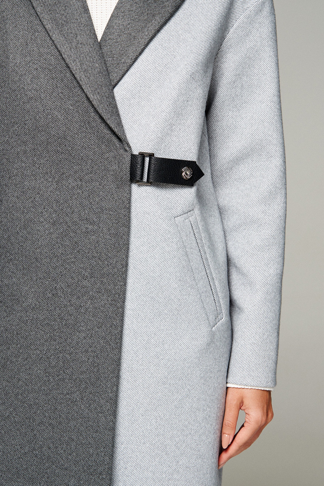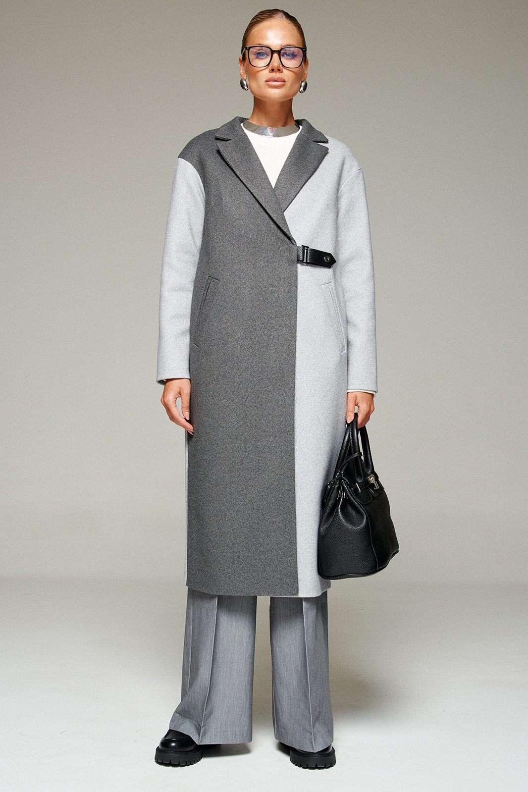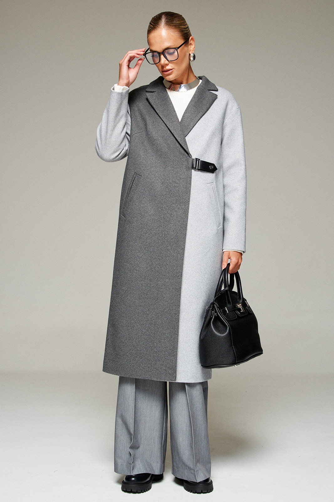 Пальто в актуальном сочетании меланжевых оттенков выполнено из шерстяной ткани, которая обеспечивает теплоизоляцию и защиту от ветра и влаги, подходит для межсезонья и теплой зимы. Двубортное, на подкладке. Изделие рассчитано на температурный режим от +10 до -5 градусов. Модель прямого силуэта с удлиненной линией плеча, предназначена для повседневного использования.
