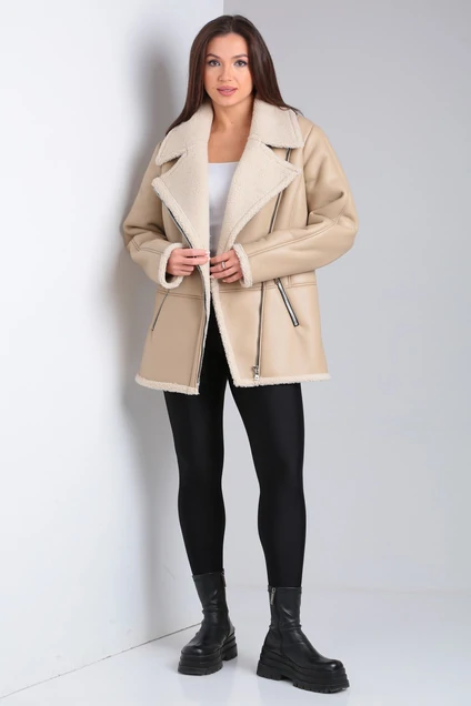 Воротник отложной. Спинка разрезная, по полочкам обработаны карманы на молнии. Застежка на косую (металлическая молния). Рукав двухшовный втачной. В модели есть прибавка на верхнюю одежду.