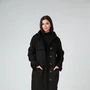 Пальто женское утепленное с центральной застежкой "молния", длиной до середины икры. Спинка выстегана фигурной стежкой. Перед с боковыми прорезными карманами "с листочкой" и фигурной стежкой. Рукав втачной одношовный со спущенной линией плеча. По низу рукава внутри трикотажный довяз. По рукаву так же фигурная стежка. Воротник-капюшон с центральной и боковыми частями и кулисой. В качестве утеплителя синтепон 200. Температурный режим до -10 градусов. Внешний вид фурнитуры может отличатсья от заявленного на фото. По низу изделия нет резинки и фиксаторов. Длина по спинке 112 см, длина рукава 51 см